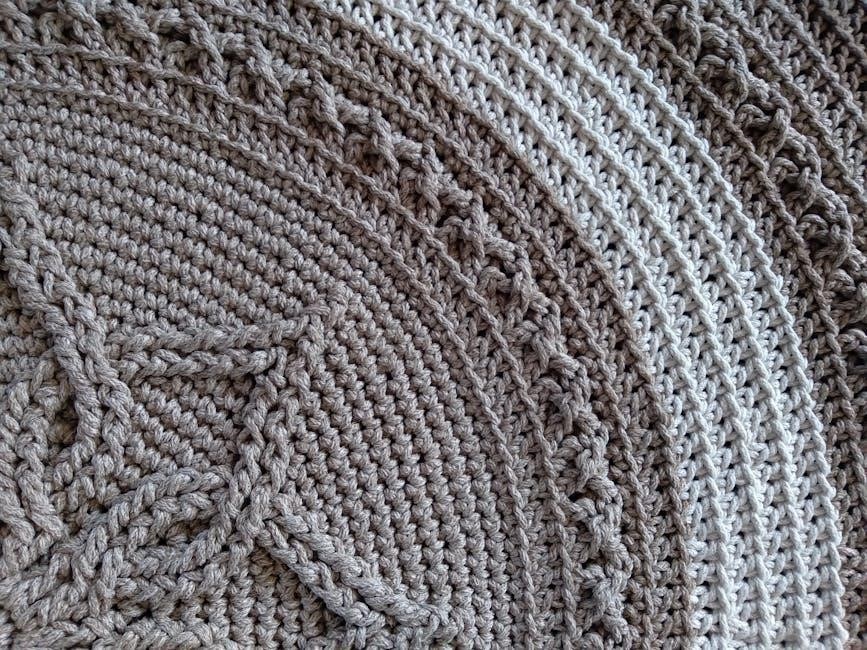Cables and lace patterns elevate Tunisian crochet to new artistic heights. Cables involve working multiple stitches together with a special hook, creating dimensional, woven-like textures. Lace patterns, with their delicate yarn overs and decreases, produce airy, intricate designs. Both techniques require precise tension control and stitch counting to maintain clarity. These advanced methods transform simple stitches into sophisticated fabrics, perfect for garments or home decor. Tunisian crochet stitches PDF guides often include step-by-step instructions for mastering these intricate designs.