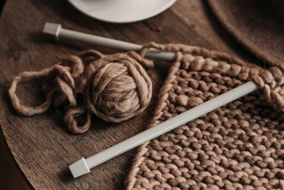 The Tunisian crochet hook, often double-ended, is crucial for its unique forward and return row technique. Yarn choice significantly impacts fabric texture; medium-weight yarns with stitch definition are ideal. A tapestry needle is essential for weaving in ends and sewing seams. Hooks vary in material (aluminum, wood, or steel) and size, depending on the project. Selecting the right tools ensures smooth stitching and professional-looking results, making them indispensable for mastering Tunisian crochet stitches.